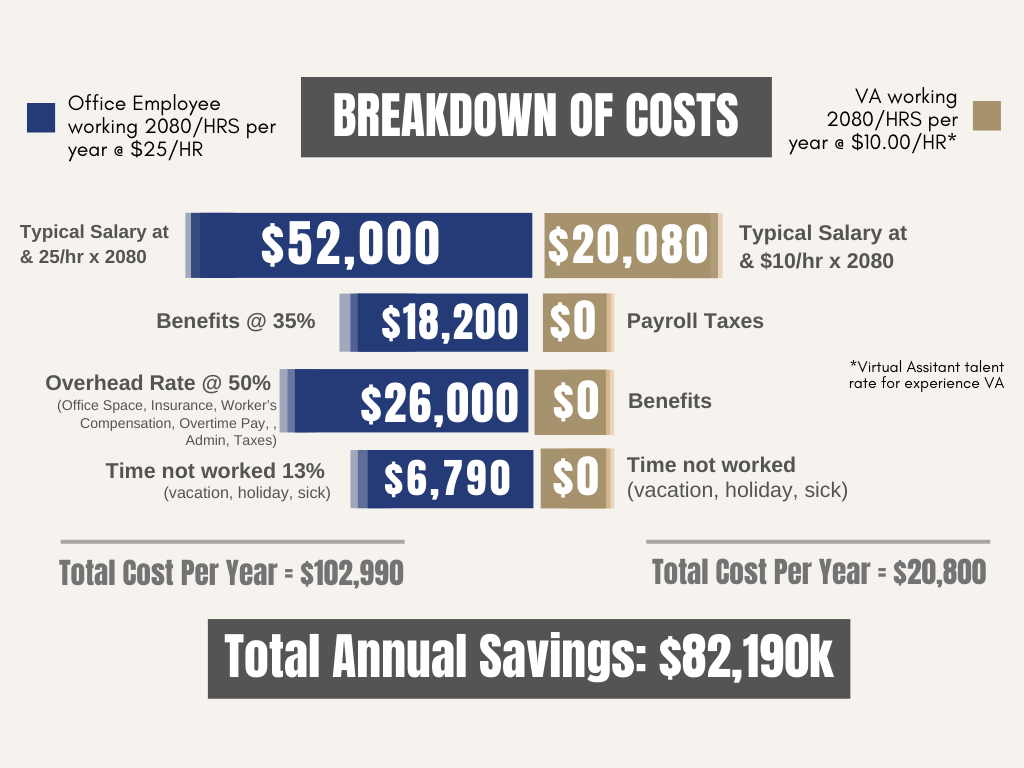 Employee turnover can be a costly problem for businesses of all sizes. The cost of recruiting and training new employees can add up quickly, and lost productivity can take a toll on the bottom line. One way to minimize the cost of employee turnover is to invest in a Virtual Assistant. For reference, you can refer to the following graphics.